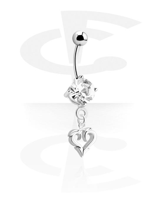 Kroužek do pupíku (chirurgická ocel, stříbrná, lesklý povrch) s přívěskem srdce a krystalovými kamínky