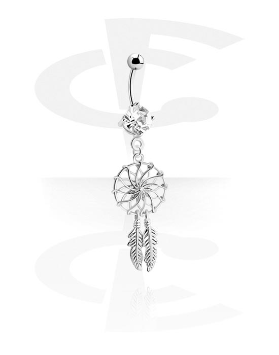 Kroužek do pupíku (chirurgická ocel, stříbrná, lesklý povrch) s přívěskem lapač snů a krystalovým kamínkem