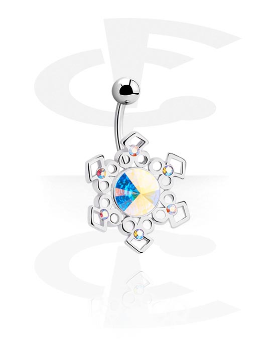 Kroužek do pupíku (chirurgická ocel, stříbrná, lesklý povrch) s krystalovými kamínky