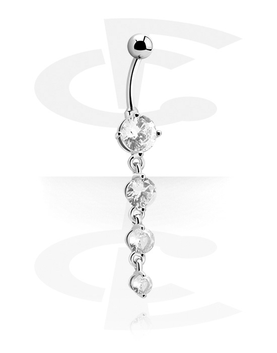 Kroužek do pupíku (chirurgická ocel, stříbrná, lesklý povrch) s krystalovými kamínky