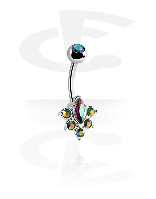 Kroužek do pupíku (chirurgická ocel, stříbrná, lesklý povrch) s krystalovými kamínky
