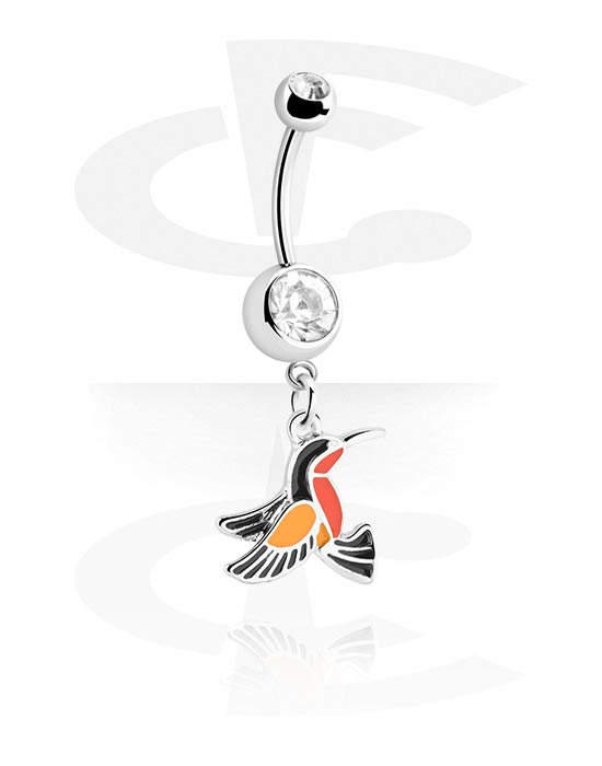 Kroužek do pupíku (chirurgická ocel, stříbrná, lesklý povrch) s Bird attachment a krystalovými kamínky