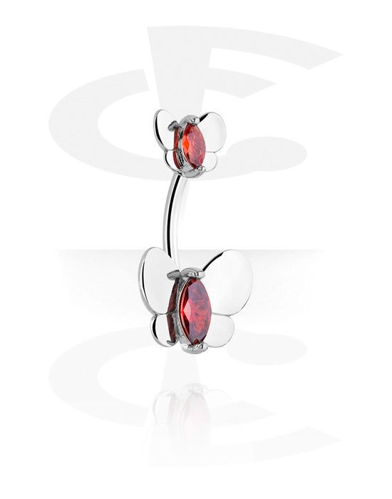 Kroužek do pupíku (chirurgická ocel, stříbrná, lesklý povrch) s designem motýl a krystalovým kamínkem
