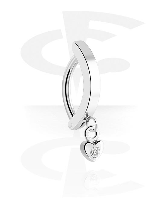 Clicker na pupík (chirurgická ocel, stříbrná, lesklý povrch) s přívěskem srdce a krystalovým kamínkem