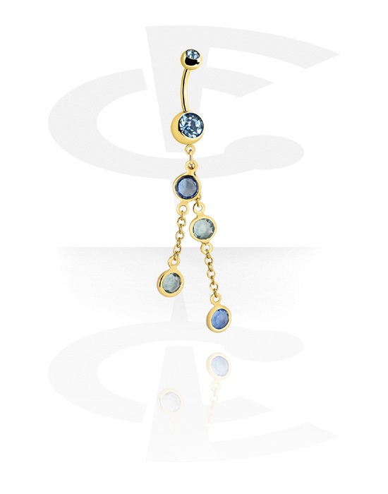 Kroužek do pupíku (chirurgická ocel, zlatá, lesklý povrch) s krystalovými kamínky a přívěskem