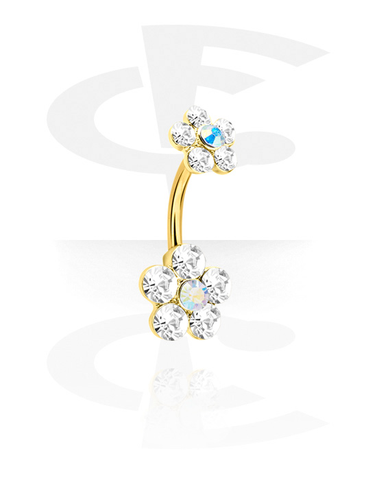 Kroužek do pupíku (chirurgická ocel, zlatá, lesklý povrch) s krystalovými kamínky