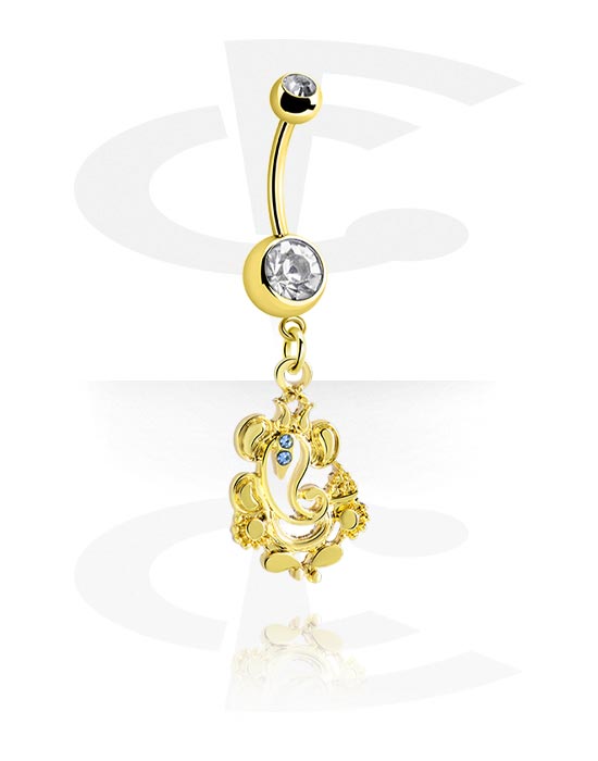 Kroužek do pupíku (chirurgická ocel, zlatá, lesklý povrch) s krystalovými kamínky