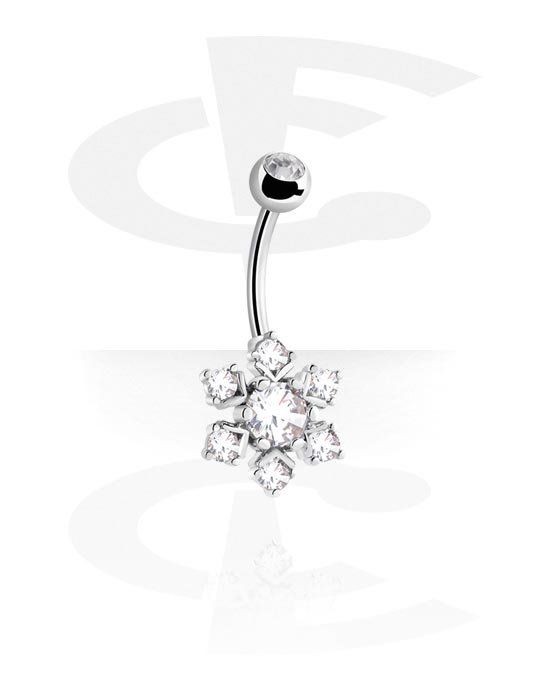 Kroužek do pupíku (chirurgická ocel, stříbrná, lesklý povrch) s krystalovými kamínky