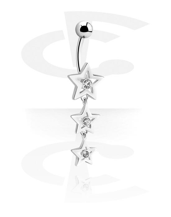 Curved barbell made of surgical steel featuring three Jewelled star dangles. A romantic, sparkling eye-catcher for your belly button piercing, with Jewelled stars in different colours for you to choose from.