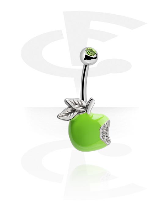 Kroužek do pupíku (chirurgická ocel, stříbrná, lesklý povrch) s designem jablko a krystalovými kamínky