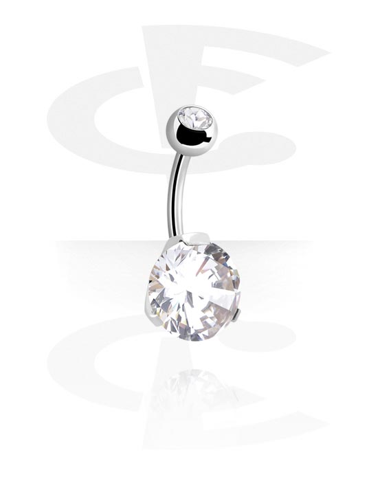 Kroužek do pupíku (chirurgická ocel, stříbrná, lesklý povrch) s krystalovými kamínky