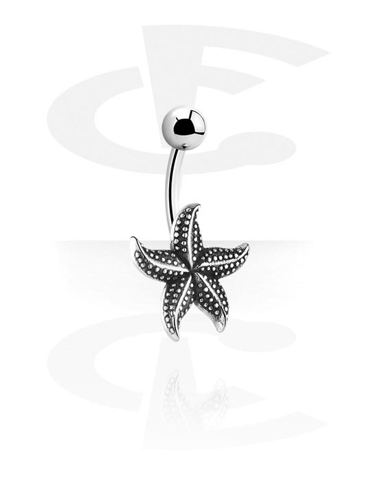 Kroužek do pupíku (chirurgická ocel, stříbrná, lesklý povrch) s designem mořská hvězdice