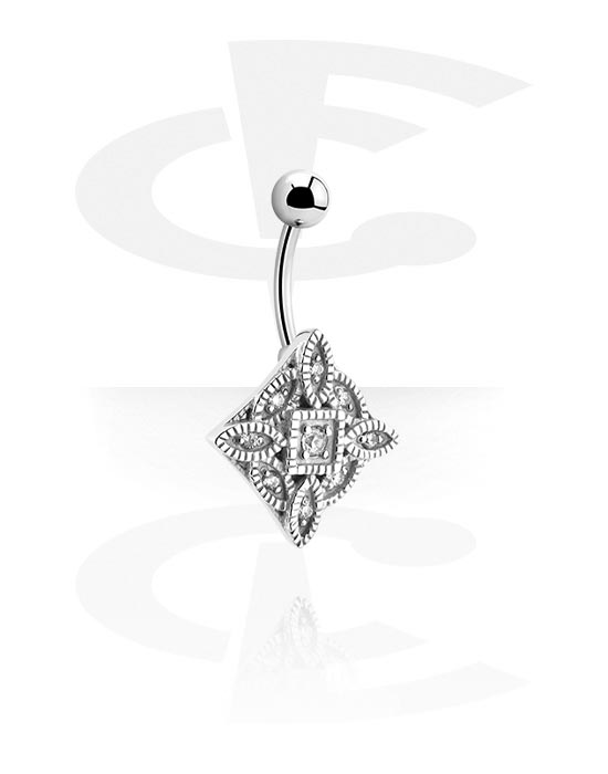 Kroužek do pupíku (chirurgická ocel, stříbrná, lesklý povrch) s krystalovými kamínky