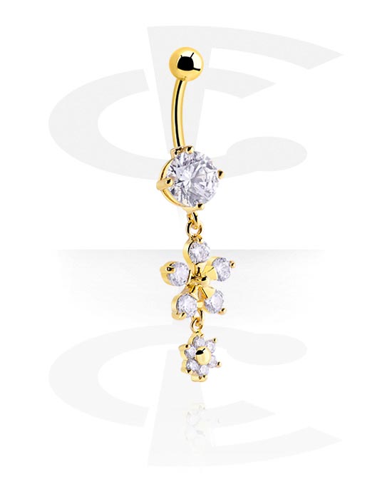 Kroužek do pupíku (chirurgická ocel, zlatá, lesklý povrch) s přívěskem a krystalovými kamínky