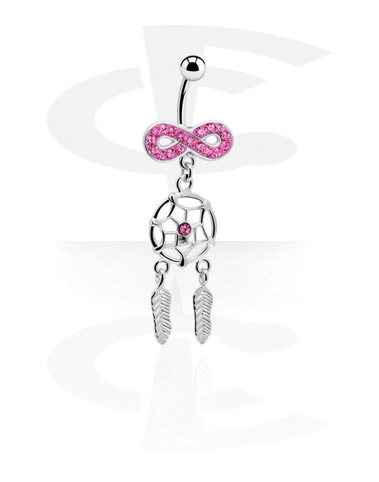 Kroužek do pupíku (chirurgická ocel, stříbrná, lesklý povrch) s přívěskem lapač snů a krystalovými kamínky
