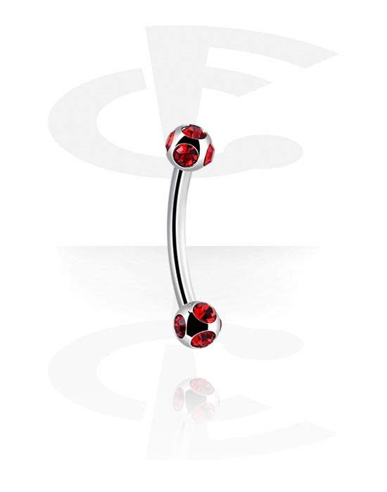 Banánek (chirurgická ocel, stříbrná, lesklý povrch) s kuličkami a krystalovými kamínky