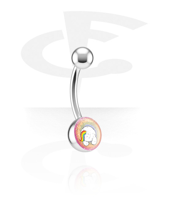 Kroužek do pupíku (chirurgická ocel, stříbrná, lesklý povrch) s Designem buclatý jednorožec