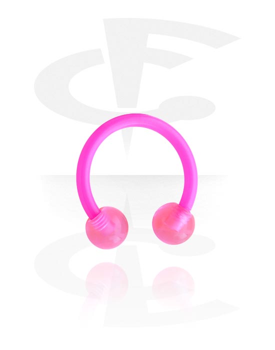 Circular barbell made of flexible acrylic with a matching ball at each end. Available in different colours.