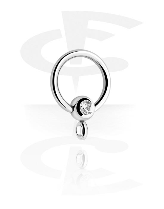 Kroužek s kuličkou (chirurgická ocel, stříbrná, lesklý povrch) s krystalovým kamínkem a obručí pro koncovky
