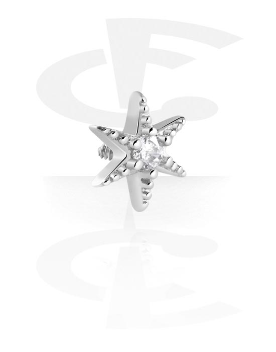 Koncovka na tyčinky s vnitřním závitem (chirurgická ocel, stříbrná, lesklý povrch) s designem hvězda a krystalovými kamínky