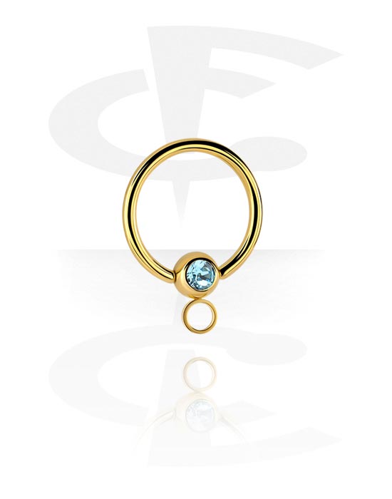 Kroužek s kuličkou (chirurgická ocel, zlatá, lesklý povrch) s krystalovým kamínkem a obručí pro koncovky