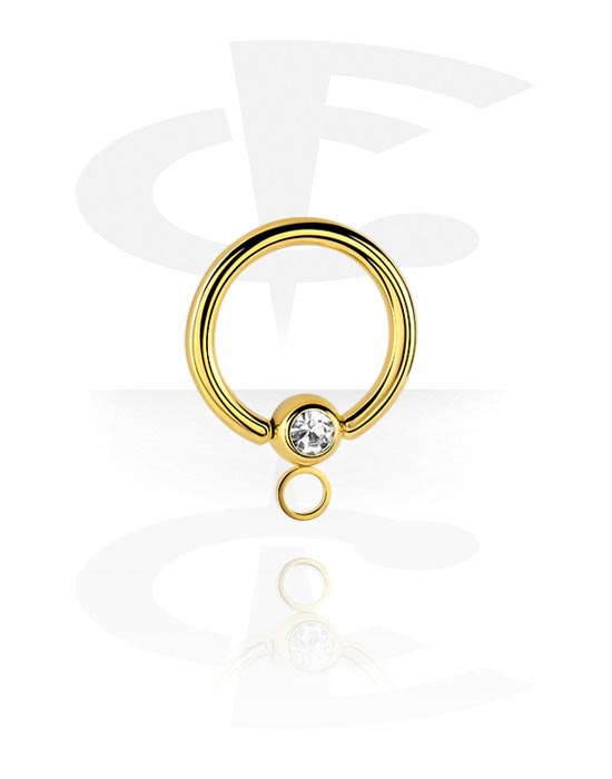 Kroužek s kuličkou (chirurgická ocel, zlatá, lesklý povrch) s krystalovým kamínkem a obručí pro koncovky