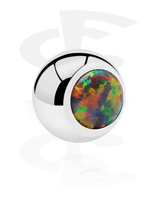 Kulička na tyčinky se závitem (chirurgická ocel, stříbrná, lesklý povrch) s syntetickým opálem