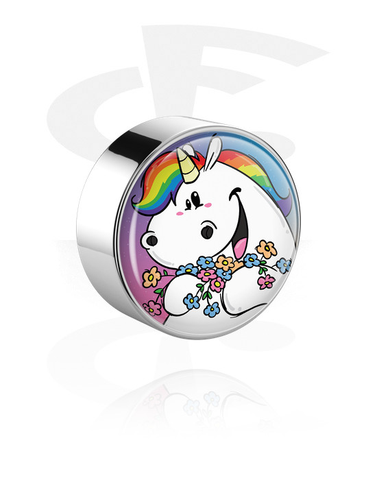 Koncovka pro 1,6mm tyčinky se závitem (chirurgická ocel, stříbrná, lesklý povrch) s Designem buclatý jednorožec