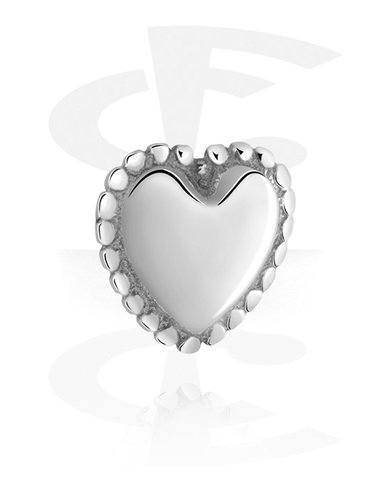 Koncovka pro 1,6mm tyčinky se závitem (chirurgická ocel, stříbrná, lesklý povrch) s designem srdce a krystalovými kamínky