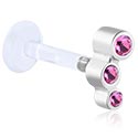 This Bioflex labret comes with a surgical steel push-fit accessory featuring a trio of sparkling crystals. A great combination for a comfortable fit and subtle attractive twinkle. Available in several colours.