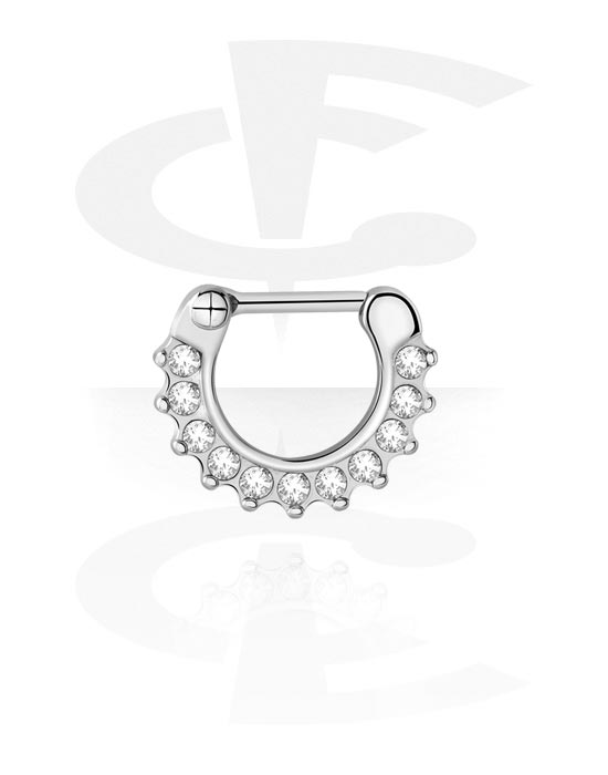Septum clicker (chirurgická ocel, stříbrná, lesklý povrch) s krystalovým kamínkem