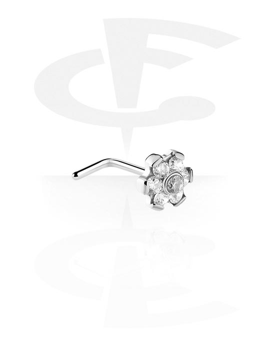 Nosovka ve tvaru L (titan, stříbrná, lesklý povrch) s koncovkou květina a krystalovými kamínky