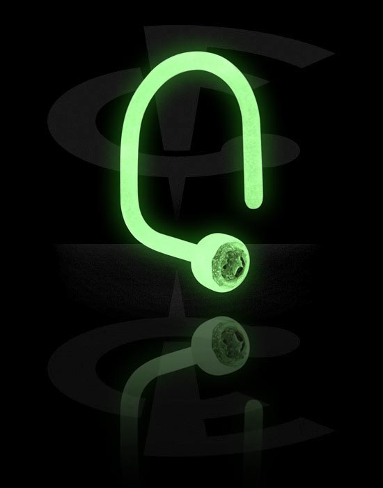 Zahnutá nosovka „Zářící ve tmě“ (bioflex, transparentní) s krystalovým kamínkem