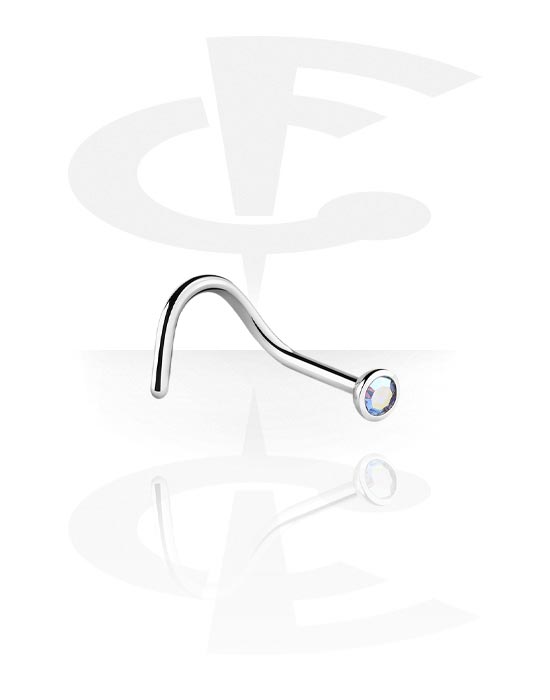 Zahnutá nosovka (chirurgická ocel, stříbrná, lesklý povrch) s krystalovým kamínkem