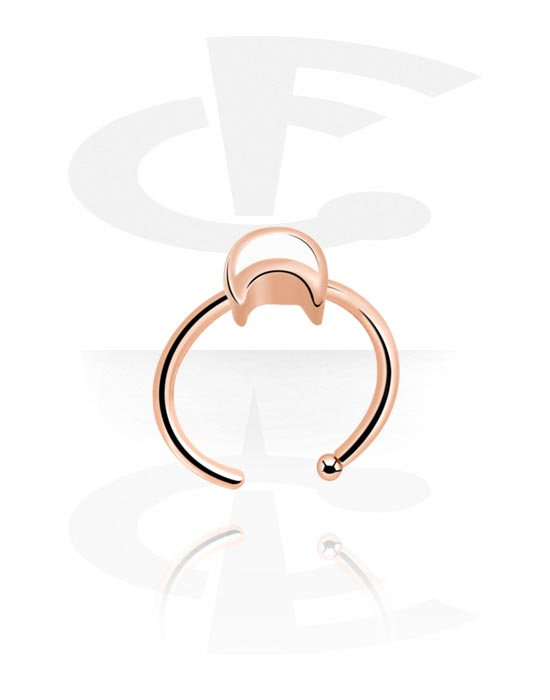 Otevřený kroužek do nosu (chirurgická ocel, růžové zlato, lesklý povrch) s koncovkou měsíc