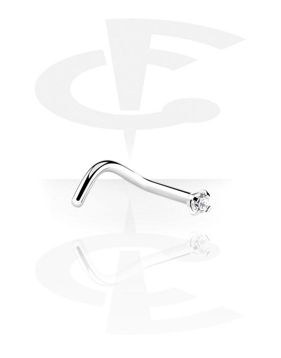 Zahnutá nosovka (chirurgická ocel, stříbrná, lesklý povrch) s krystalovým kamínkem