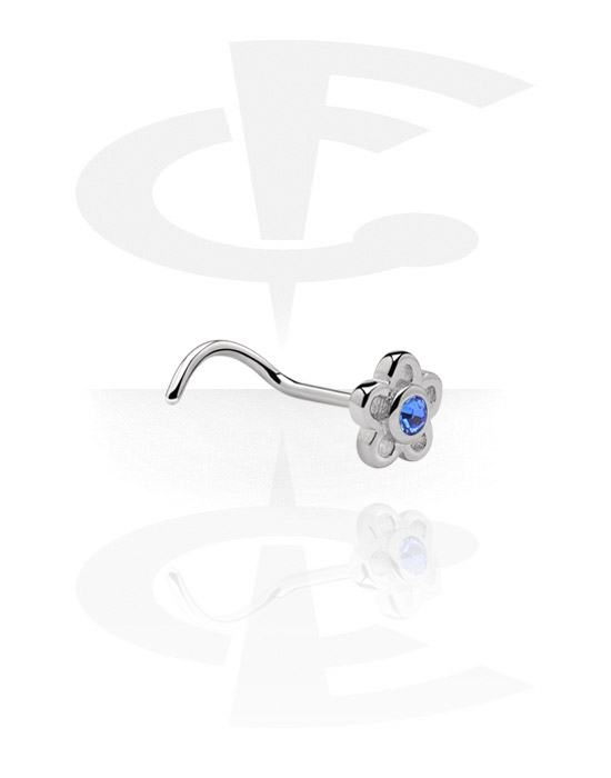 Zahnutá nosovka (chirurgická ocel, stříbrná, lesklý povrch) s koncovkou květina a krystalovým kamínkem