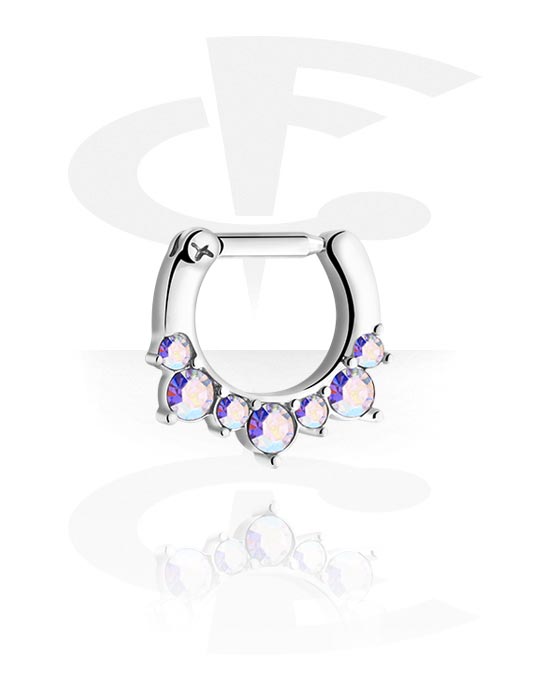 Septum clicker (chirurgická ocel, stříbrná, lesklý povrch) s krystalovými kamínky