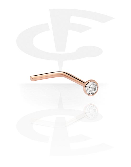 Nosovka ve tvaru L (chirurgická ocel, růžové zlato, lesklý povrch) s krystalovým kamínkem