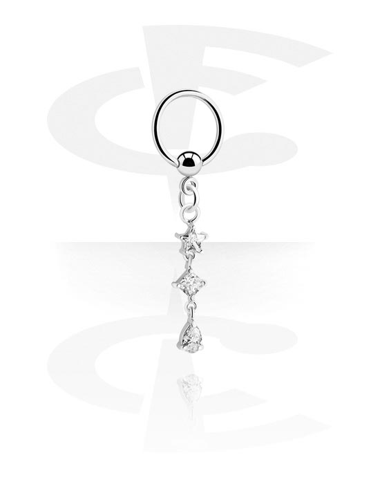 Kroužek s kuličkou (chirurgická ocel, stříbrná, lesklý povrch) s přívěskem a krystalovými kamínky