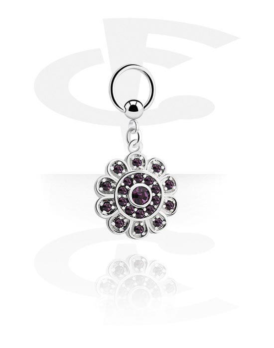 Kroužek s kuličkou (chirurgická ocel, stříbrná, lesklý povrch) s přívěskem a krystalovými kamínky