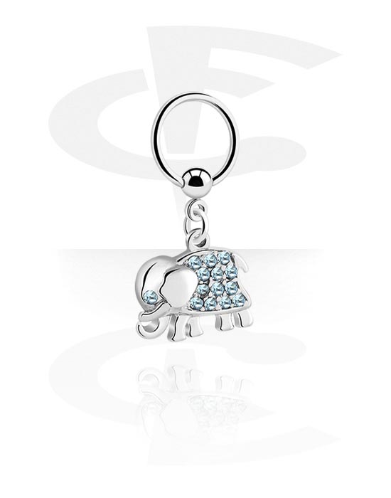 Kroužek s kuličkou (chirurgická ocel, stříbrná, lesklý povrch) s přívěskem slon a krystalovými kamínky
