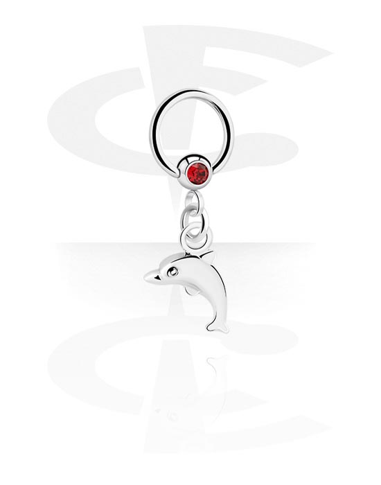 Kroužek s kuličkou (chirurgická ocel, stříbrná, lesklý povrch) s krystalovým kamínkem a přívěskem delfín