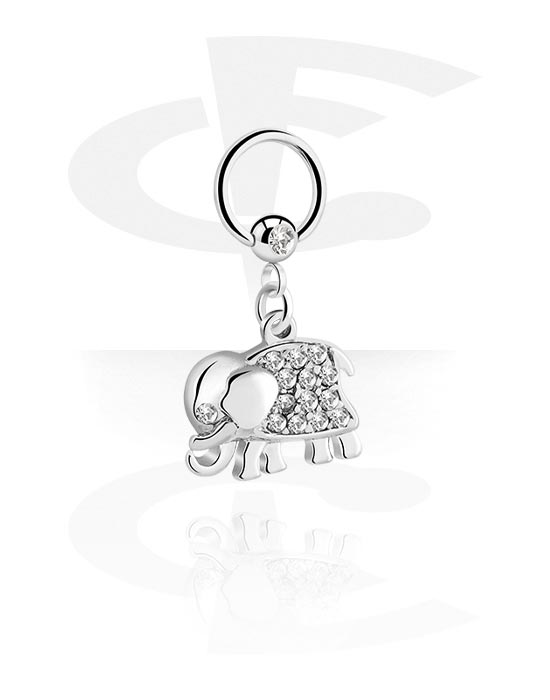 Kroužek s kuličkou (chirurgická ocel, stříbrná, lesklý povrch) s přívěskem slon a krystalovými kamínky