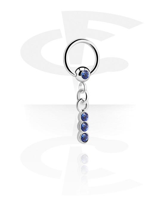 Kroužek s kuličkou (chirurgická ocel, stříbrná, lesklý povrch) s krystalovým kamínkem a přívěskem