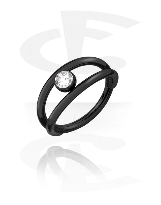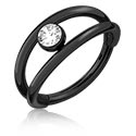 Piercingový clicker (chirurgická ocel, černá, lesklý povrch) s krystalovým kamínkem