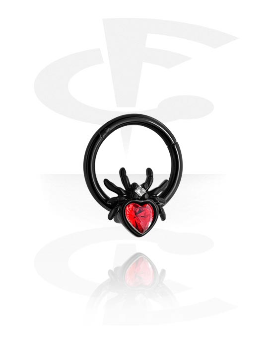 Piercingový clicker (chirurgická ocel, černá, lesklý povrch) s designem pavouk a krystalovými kamínky