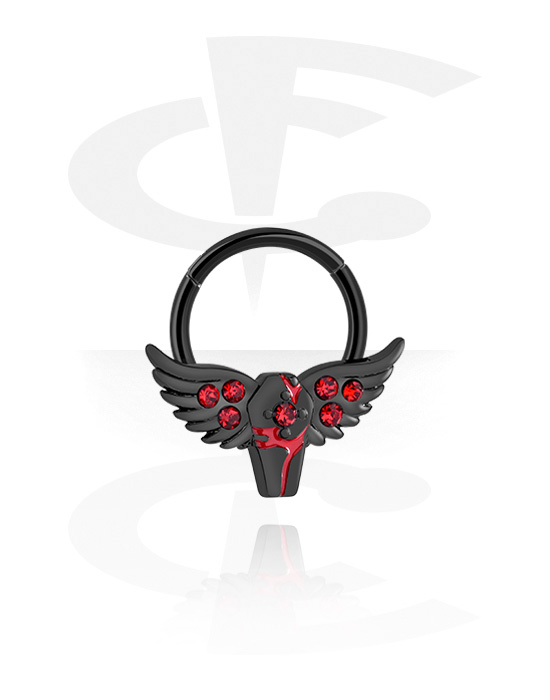 Piercingový clicker (chirurgická ocel, černá, lesklý povrch) s Rakví a designem křídlo