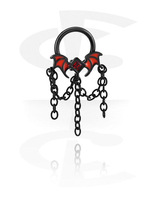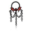 Piercingový clicker (chirurgická ocel, černá, lesklý povrch) s designem netopýr a řetízkem