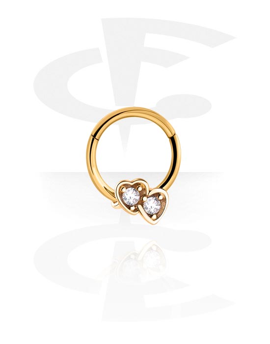 Piercingový clicker (chirurgická ocel, zlatá, lesklý povrch) s koncovkou srdce a krystalovými kamínky